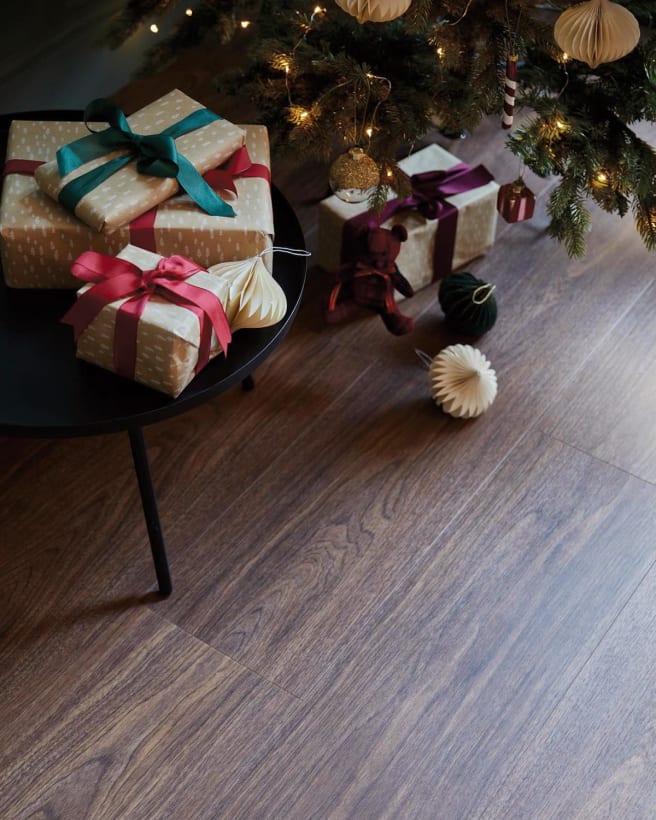 Wooden textures not only create an inviting Christmas interior but also add natural elegance to the home all year round, making wood an ideal design choice for flooring.