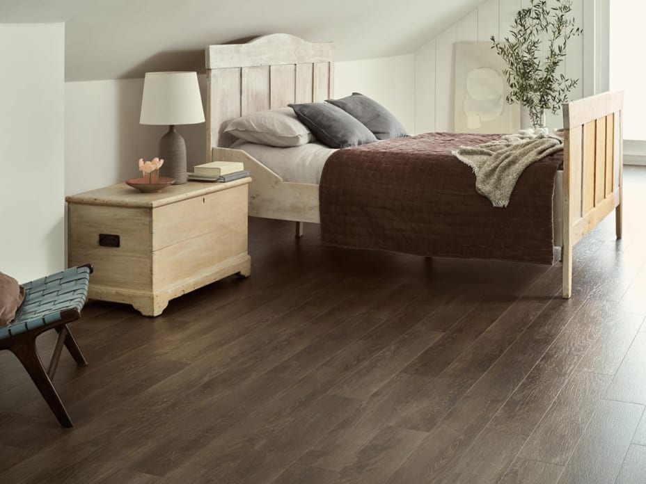 For a more natural feel, look to Bister Oak from our Form collection, perfect for adding harmony and warmth to your home. This rich, deep coloured wood-effect LVT instantly creates a rustic décor feel. With all of our wooden LVT designs, we recommend styling the room with complementary woods. For Bister Oak, pair with heavily grained furniture and soft textured furnishings to create a truly welcoming and zen interior.