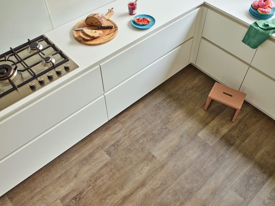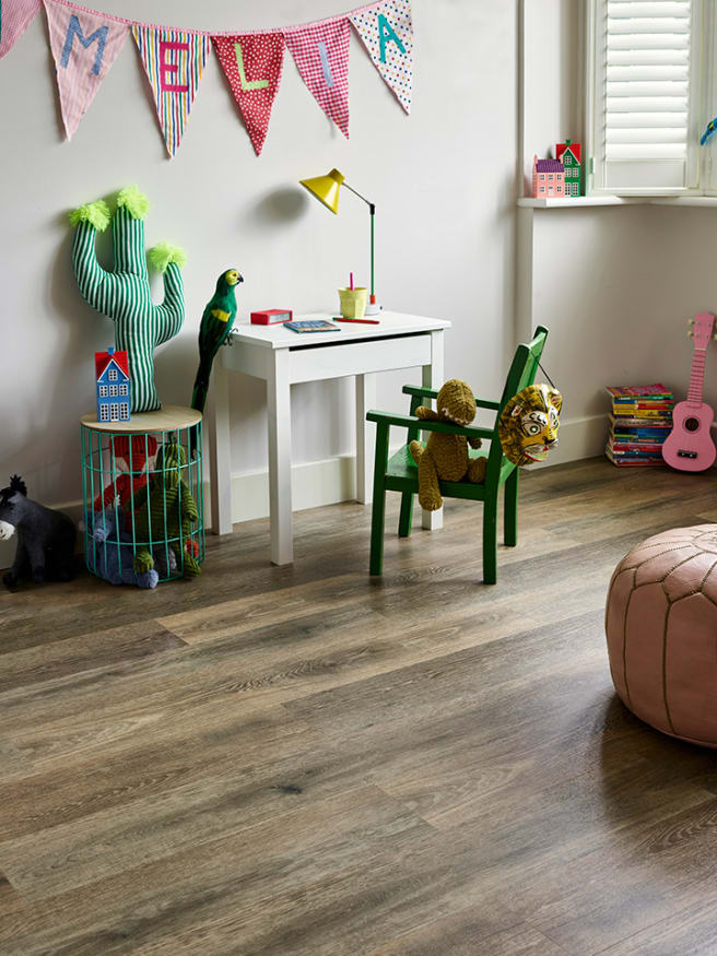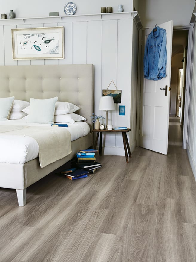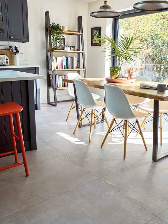 Extra-large LVT tiles can also be used to elevate an open-plan kitchen-diner or to make a compact hallway, bathroom or ensuite feel bigger and brighter. For an on-trend urban vibe, our Villa Concrete is a much easier and affordable alternative to a poured concrete floor while Horizon adds a luxe look with its smoky tones.