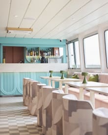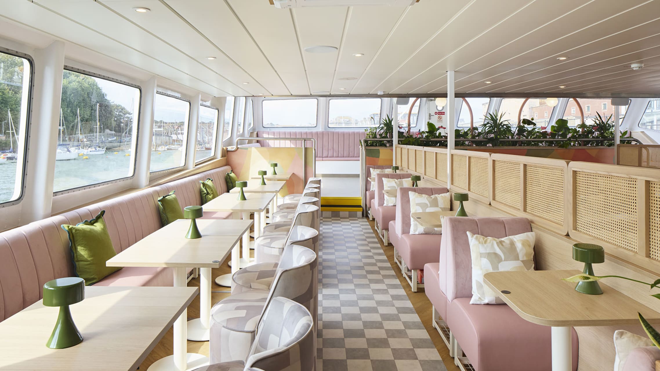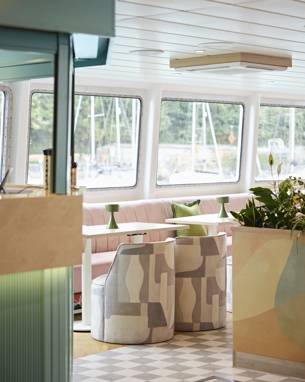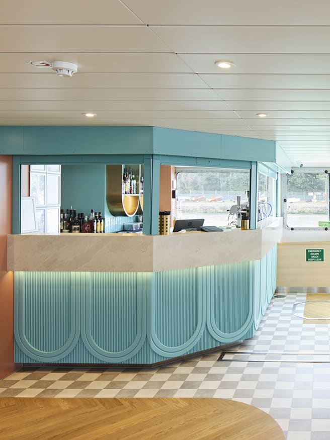 The result is a stunning and playful space which mixes pattern, shapes and colour – making it the ideal environment for the versatile demands of the vessel.