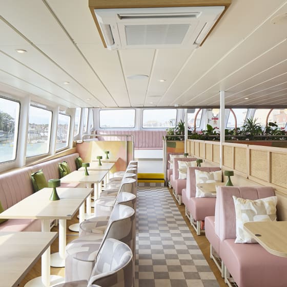 Sailing from Weymouth Harbour, Coastal Vibe’s cruises provide a comfortable and cosy interior space to enjoy the breath-taking Jurassic Coastline. Designed by KTM Design, the concept was inspired by land, sea and sky.