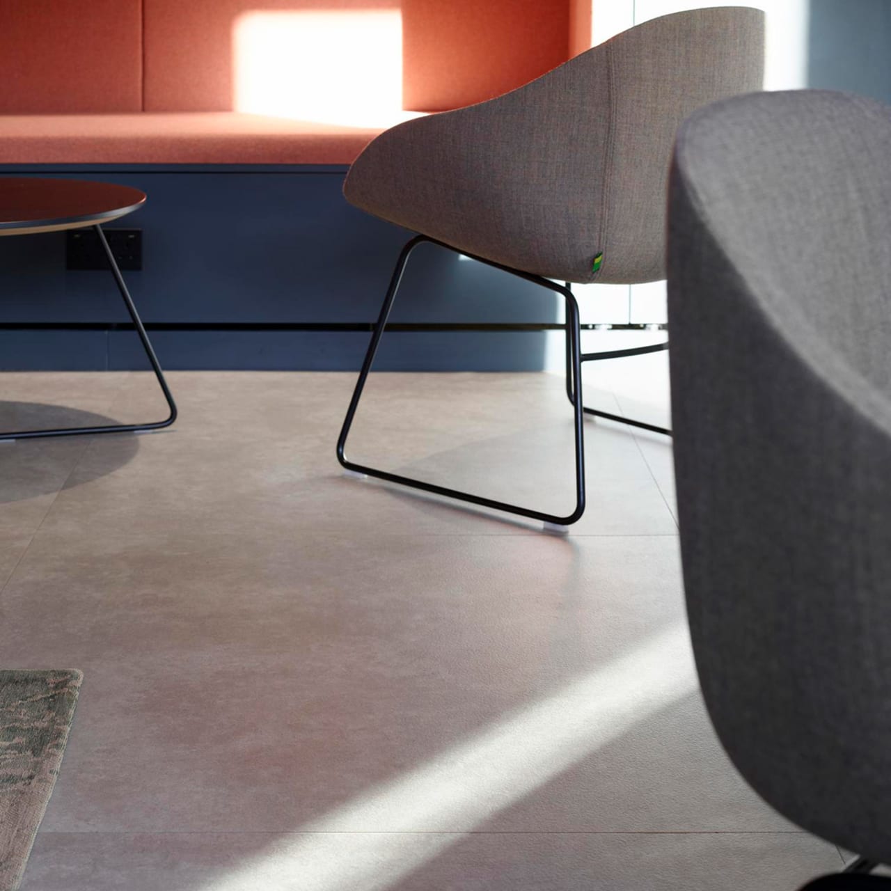 The breakout area features Plaza Concrete from the Amtico Spacia collection.
