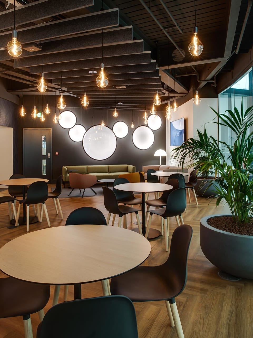 The choice of a Wood design subtly defines the area, making it feel separate yet connected with the overall design concept, making it ideal for informal meetings, collaborative discussions, or a space to quietly recharge.