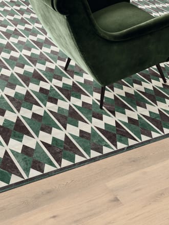 Fontana Marble Green combines a natural sea green with the decadence of marble. Pair with gold finishes and rich woods for a luxurious interior.