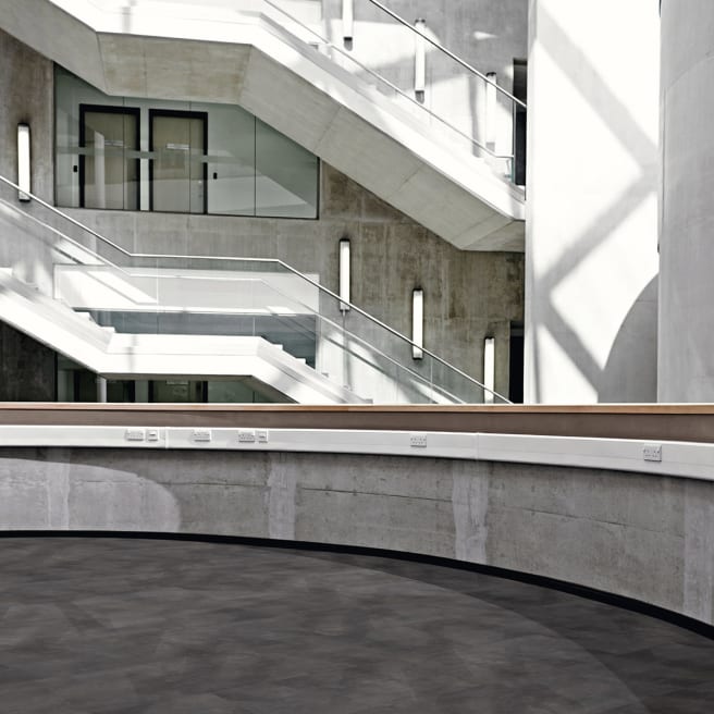 Bodenbeläge in Krankenhäusern oder Schulen sind täglich enormen Belastungen ausgesetzt. Ob durch Pflegebetten, Rollcontainer oder die stetige Bewegung vieler Menschen. Das Material muss seine Form und Optik auch unter starker Beanspruchung behalten. Langlebige Qualität schafft Sicherheit und Planungskontinuität.