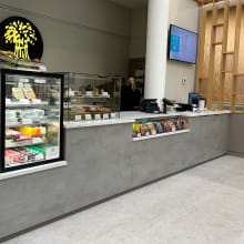 In der dritten Phase wurde die NFU Mutual HQ mit einem alternativen Lebensmittelangebot ausgestattet und eine beeindruckende Deli-Bar eingerichtet. Passend zum Thema der Landhausküche wurde in diesem Bereich eine Kombination aus dem bereits bekannten Bodenbelag verwendet: Wilmcote Limestone und Classic Argent von Décor.
