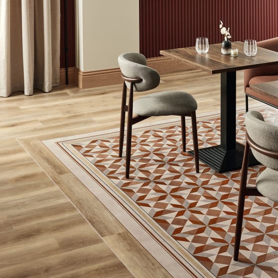 Premium-Bodenbeläge, die alle Blicke auf sich ziehen. Setzen Sie mit Amtico Décor ein zeitloses Statement.