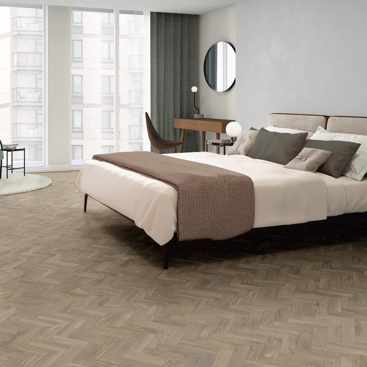 Aschige Neutraltöne verschmelzen zu diesem eleganten, minimalistischen Holz.