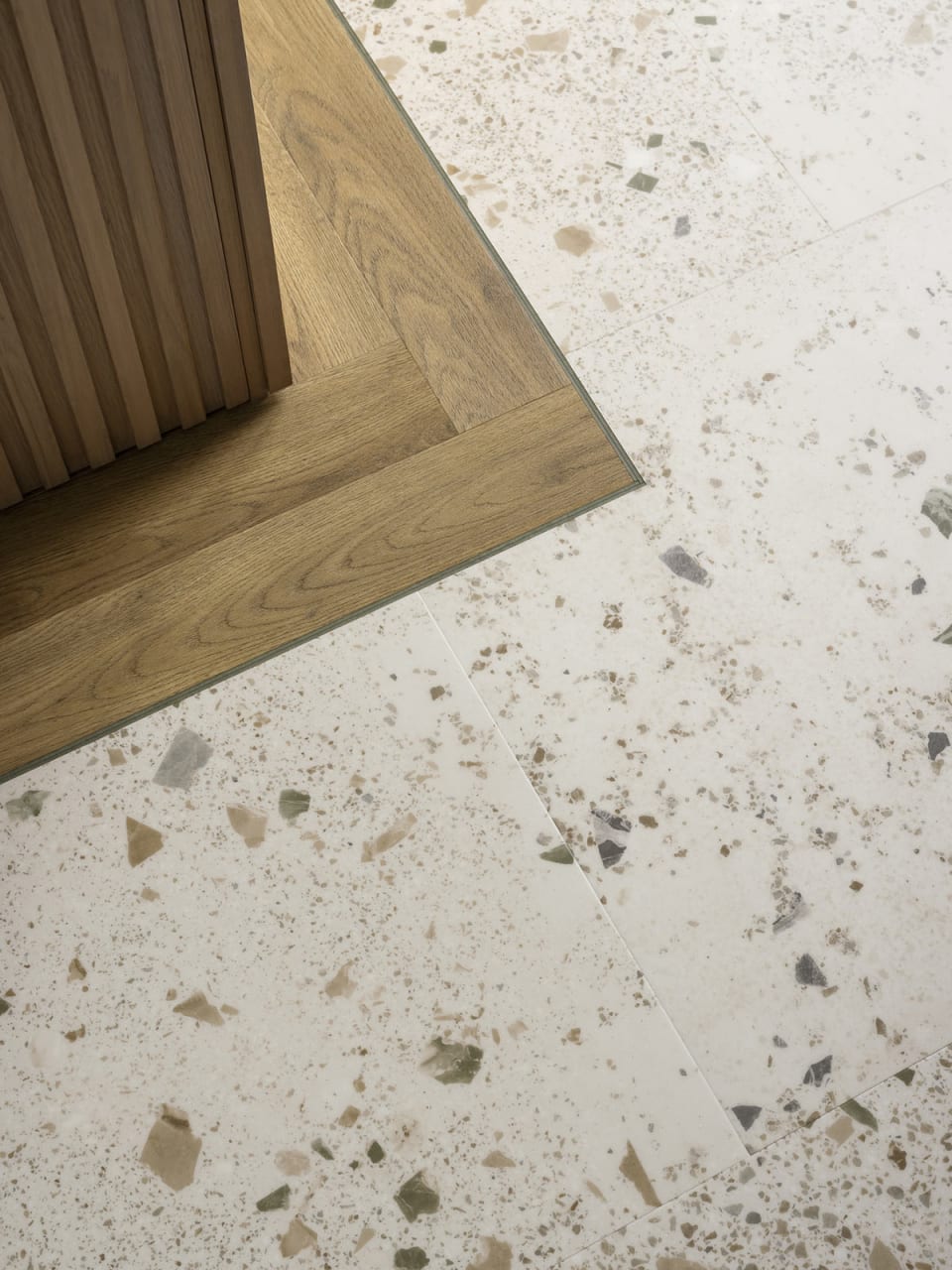 Fragmentos verdes y beige integrados en una base fresca hacen de Garda la opción perfecta para conectar sutilmente con la naturaleza en espacios biophilic. Combina de maravilla con maderas cálidas.