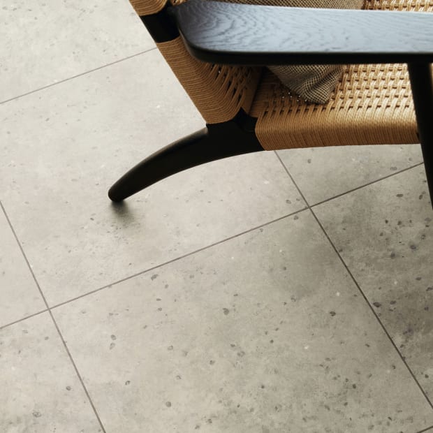 Sus tonos grises medios y su estética moteada resultan tanto llamativos como funcionales, aportando resistencia y estilo a espacios abiertos.
