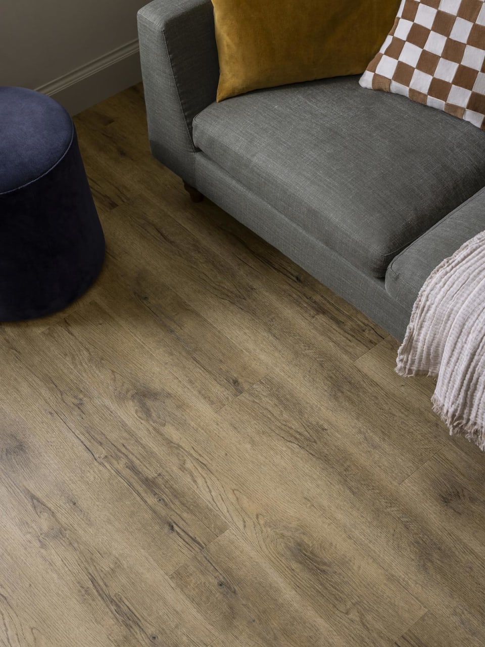 Con un acabado que imita la madera recuperada, Lodge Oak presenta tonos cálidos y neutros, junto a profundas grietas y nudos. Ideal para su instalación en el clásico esquema de montaje “Stripwood” que realza su carácter rústico.