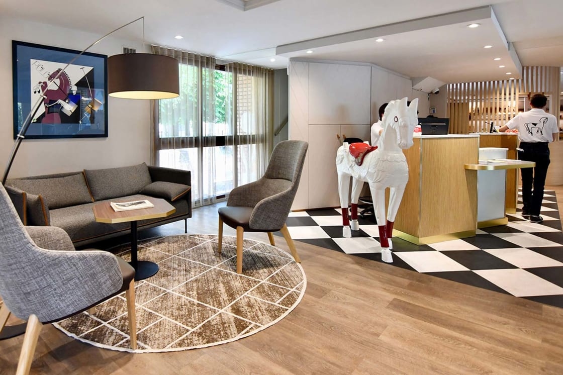 Dès leur arrivée, les clients de l’hôtel Ibis Maisons-Laffitte sont plongés dans l’univers des courses hippiques.