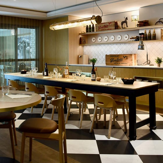 Situé dans une zone affectueusement surnommée « La Ville du Cheval » en raison de son célèbre hippodrome, l’intérieur repensé de l’hôtel Ibis Maisons Laffitte reflète élégamment les codes des courses hippiques, avec des références raffinées à la sellerie, aux couleurs des jockeys et à l’univers des écuries.