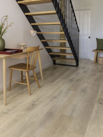 De zacht rustieke uitstraling van Blanched Oak komt tot uiting in de fijne kenmerken van dwars gezaagd hout, de lichte en donkere nerfvariatie en de mix van zachte kleuren.