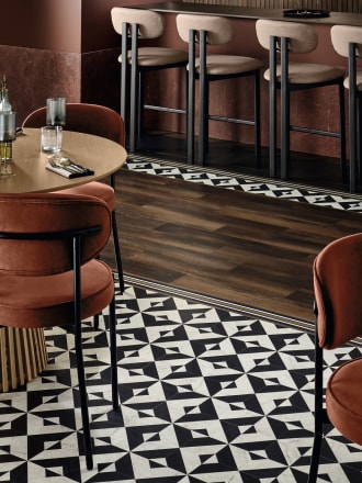 Amtico Décor är en kollektions med hantverkskvalitet som för tankarna till klassiska viktorianska klinkergolv. Perfekt för att integrera dekorativa detaljer i en rumsmiljö.