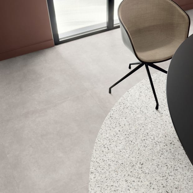 En vacker skiftning av varma och kalla toner framhäver det återvunna, åldrade uttrycket. I läggningsmönstret Large Parquet framträder ådringsvariationerna tydligast.