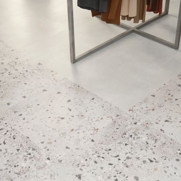 Djärva variationer och naturliga färgaccenter finns i en mellangrå betongbas, vilket skapar en dramatisk effekt med starka rörelser.